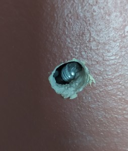 Mais je m’égare. Je jurais donc, mais ce n’était pas de ma faute. Quand j’essaie de les percer, les murs de la maison, plâtre et brique, se comportent comme une couche de caramel craquant, mais qui se situerait au milieu de deux épaisseurs de crème brûlée. Autrement dit : mou – dur – mou. (Je vous vois sourire petits coquins). Et c’est un peu compliqué de doser son effort face à ce genre de combinaison : si tu n’y prends garde, tu perds le contrôle, et alors que tu voulais percer un trou de 5, tu te retrouves avec ouverture pour baie vitrée. Un peu comme quand, à 7 ou 8 ans, tu tires de toutes tes forces sur la poupée que tu estimes être tienne, pendant que par l’autre bout ta sœur tire pour la même raison avec la même ténacité : l’équilibre se fait, jusqu’à ce que l’une des deux cède brutalement et lâche l’affaire parce que c’est l’heure du goûter ; l’autre, sous l’effet de la tension relâchée, se voit alors violemment projetée au sol.