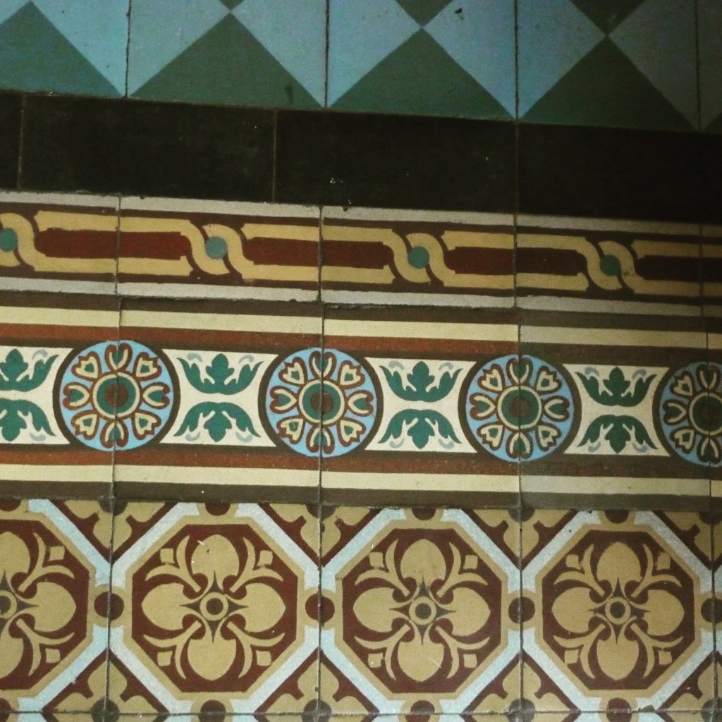 En juillet 2012, nous avons vidé la maison de ma grand’mère. Oncles et tantes, parents, petits-enfants, cousins et cousines, une bonne partie de la famille s’est retrouvée un jour de fête nationale pour pénétrer une dernière fois dans la maison-aux-souvenirs, la voir se vider et se partager quelques meubles et objets chéris. Notre aïeule désormais hébergée en maison de retraite, il fallait bien se résoudre à faire quelque chose de cette grande bâtisse que plus personne n’habitait. Elle serait vendue et, on le savait, totalement rénovée et même agrandie, en mordant sur l’immense jardin, pour être transformée en plusieurs logements modernes. Certains pensaient « quel dommage », d’autres disaient « pourquoi pas », moi je pensais seulement « ben merde alors ils vont démolir le carrelage de la cuisine ». Alors je l’ai pris en photo, le carrelage de la cuisine, pour me souvenir ; et puis aussi celui du couloir, et aussi le papier peint un peu partout. Quand j’ai vu mes cousin.es me regarder d’un air inquiet sortir des toilettes mon appareil photo à la main, j’ai renoncé à immortaliser aussi les murs de la salle de bains, les marches qui vont vers l’écurie, le couloir à charbon, la moquette des escaliers si raides-ne-courez-pas-en-descendant, et le grand corridor sombre de l’étage qui nous faisait peur quand on montait se coucher. Et le lustre à pampilles de la salle à manger. Et le vieux piano désaccordé. Et la chambre bleue. Et le petit cabinet. (Cette demeure est un roman d’Agatha Christie à elle seule). J’aurais bien mis la maison toute entière sur pellicule, mais tant pis ; j’ai rassuré les miens sur ma santé mentale et je me suis contentée de trois ou quatre clichés. L’essentiel, c’était ces carreaux de ciment du sol de la cuisine. Je refusais que l’image de ces motifs s’estompe dans ma tête au fur et à mesure des années, il m’en fallait un souvenir tangible. Et puis j’avais une petite idée, dont je n’ai alors, je crois, parlé à personne : un jour, je ferais reproduire ces carreaux et je les poserais quelque part dans ma maison.